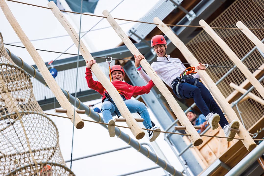 Klim je zo hoog als je durft, neem hindernissen en ga van de ziplines. Alles gebeurt veilig, onder begeleiding van professionals. We sluiten de middag af met limonade en een patatje.